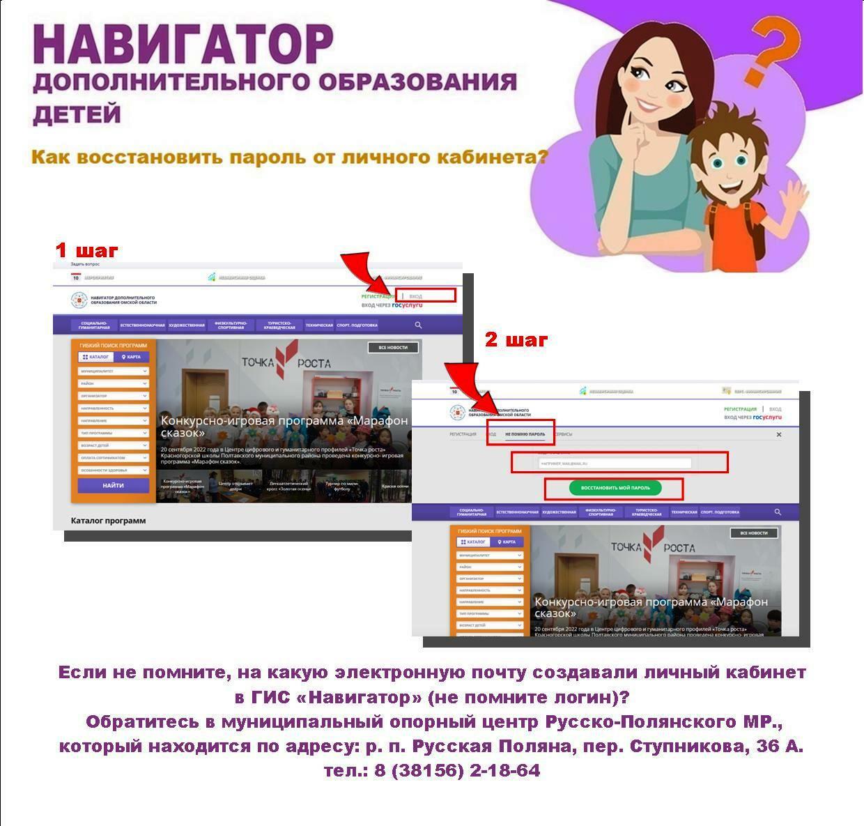 Муниципальный опорный центр дополнительного образования детей Русско-Полянского муниципального района Адрес: Омская область, р.п. Русская Поляна, пер. Ступникова, 36 А Контактный телефон: 8(38156)2-18-64 E-mail: rpddt-kuzy@mail.ru Сайт: http://doddt.r-pol.obr55.ru/ Руководитель МОЦ Русско-Полянского МР: Пасько Ольга Васильевна Методисты МОЦ Русско-Полянского МР: Дузенко Ольга Николаевна